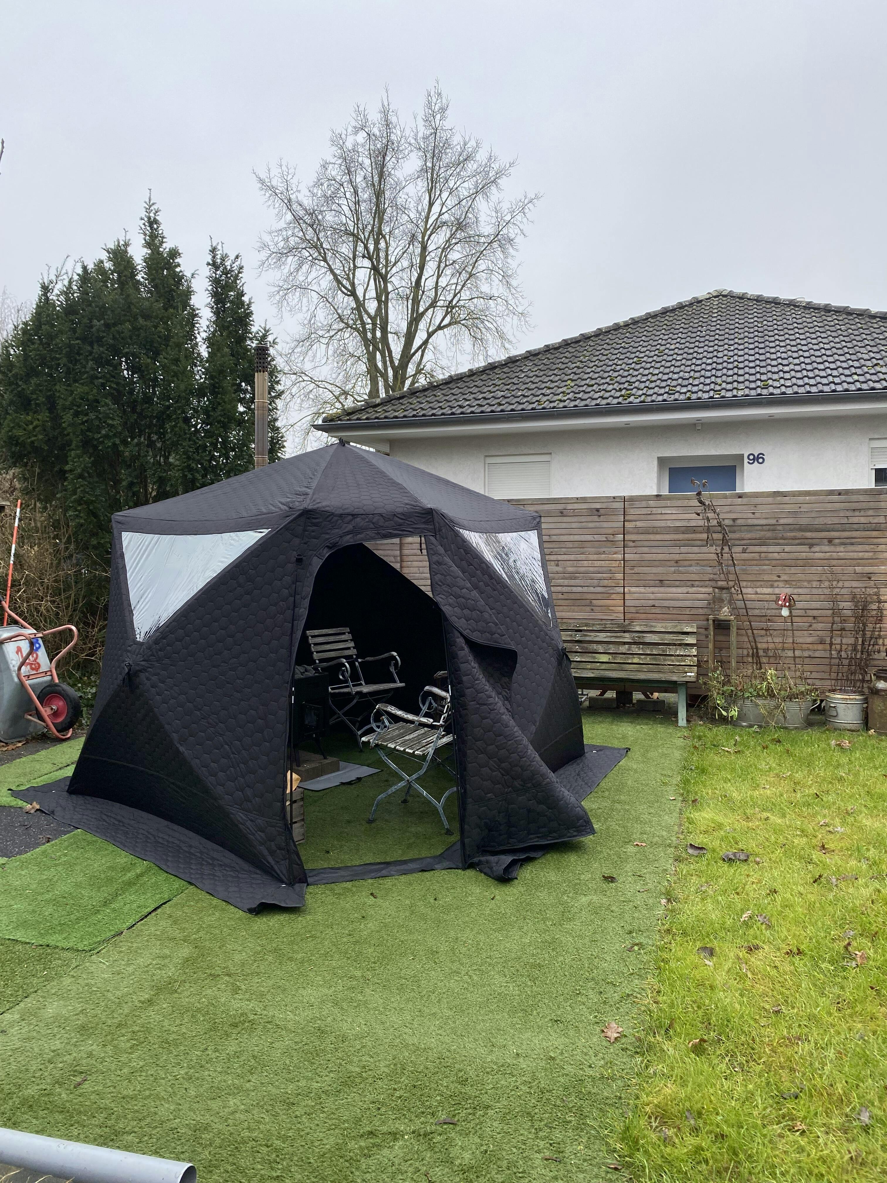 Ich bin mega begeistert von dem Saunazelt. Schnelle auf und ab gebaut. Hatte schon über 100 Grad im Zelt. Klare Kaufempfehlung.